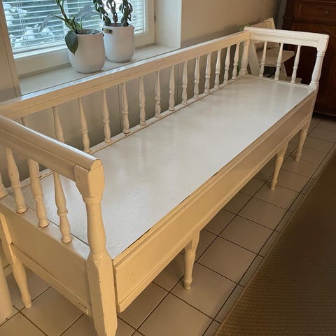 Vanha Emma sohva, uudelleen verhoiltu myös jouset ja vyöt vaihdettu, jämäkkä, ei mitään jälkiä kankaassa