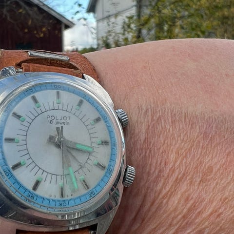 Siisti hyväkuntoinen itänaapurin mekaaninen automaattivetoinen aito Poljot rannekello.Toimiva,kone käy terveellä käynnillä.Keräilijän jäämistöstä.2023 vaihdettu vetonuppi.Valmistus ilmeisesti Ukraina??. Ikä?? voi olla 70 luvulta??Hyvin on säilynyt.Koko noin 37mm.Katso kuvat ja muutkin myyntini Torissa