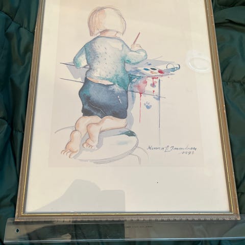 32cm x 24cm printti taulu Minna Immonen Tyttö syksyn lehtien keskellä akvarelli