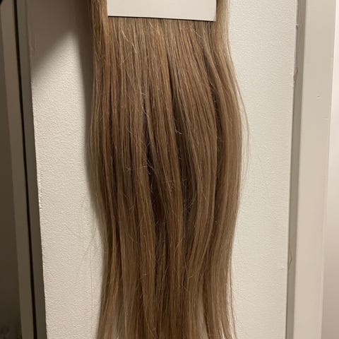 Minulle väärän värisävyn vuoksi lähes käyttämättä jäänyt, uudenveroinen ponnaripidennys aidosta hiuksesta. Käytetty pari kertaa muutama tunti kerrallaan.
