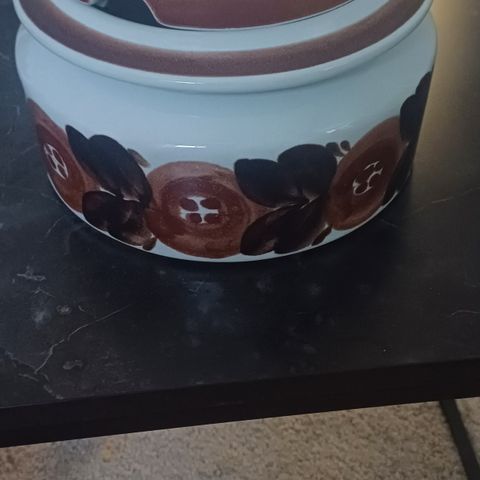 Väri: valkoinen ja ruskea, koristeena kukkakuviointi.