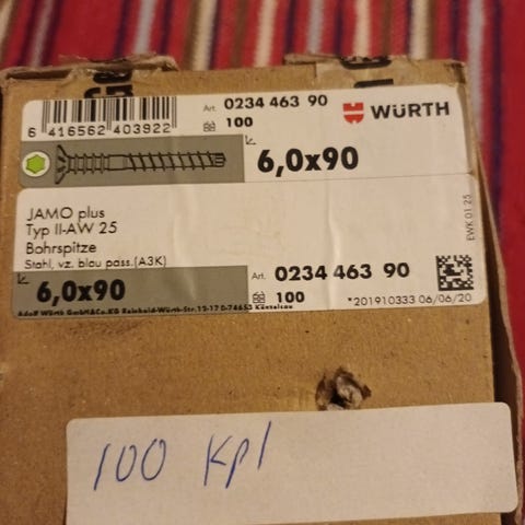 Myydään kateruuvit 4.8x50mm punainen yht.230kpl