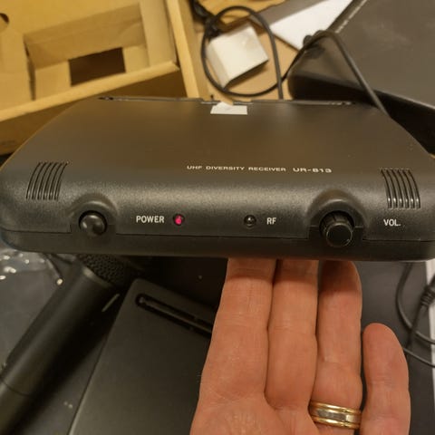 Lähestulkoon käyttämätön ammattitason langaton mikkisetti. Setissä kaksi identtistä mikrofonia. Kanavataajuudet 635,00-684,750 mHz. Helppokäyttöinen, analoginen, luvallinen suomen taajuuksille.