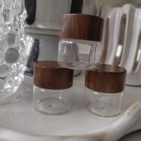 Ruskeat, käyttämättömät lasipurkit esim kosmetiikan valmistukseen.