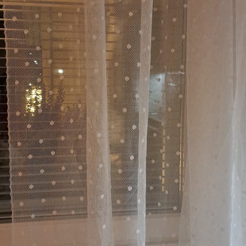 Kuvanmukainen, valkoinen valoverho. Verhon korkeus 240 cm ja leveys 400 cm. Verhojen toisessa reunassa 7 cm leveä "röyhelö", sisältä katsottuna oikean puoleisessa. Verhon yläreunassa rypistysnauha. Verhot on ommeltu Eurokankaassa. Tässä hyvä sisustusverho esimerkiksi juhlatilaisuuteen. 15 euroa. Nouto tai postitus; myös ToriDiili -lähetys käy.