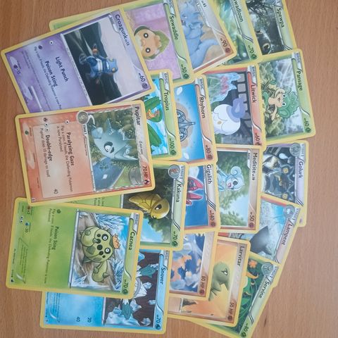 20 kappaletta erilaisia Pokemon korttia. Kaksi holoa mukana: Snivy Holo & Maractus Holo. Myyn kaiken kerralla.