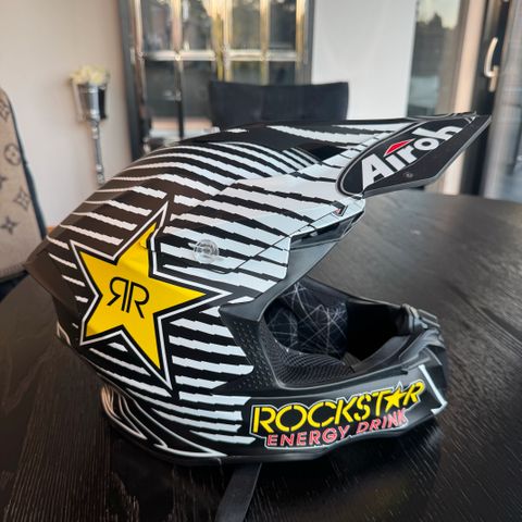 Airoh Rockstar kypärä, väri musta ja keltainen. Kypärä on suunniteltu moottoripyöräilyyn ja tarjoaa suojaa ja kestävyyttä. Kypärässä on huomiota herättävä Rockstar-brändäys ja se on valmistettu kestävistä materiaaleista turvallisuuden takaamiseksi.