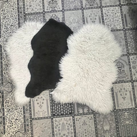 Pitkäkarvaisia keltaisia lammasturkkeja. 20 €/kpl