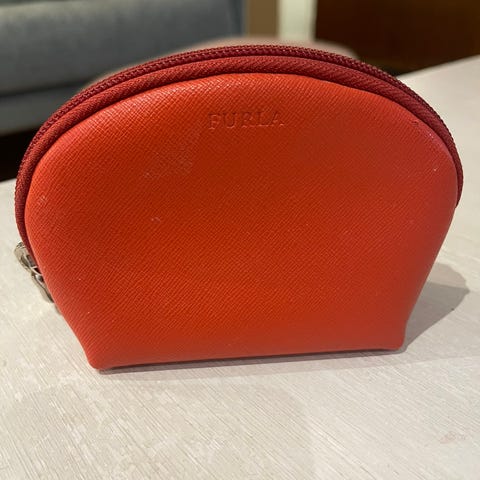 Furla pussukka 9cm x 14cm x 4cm, muta/harmaa/beige, käytetty, siisti ja ehjä.