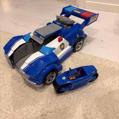 Vainun iso auto, pieni auto ja mopo, sampan pieni auto, sekä hahmot