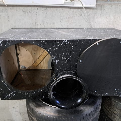 142x32x36cm. Ollut Vw Grafterin etupenkkien takana.