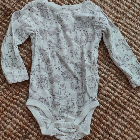 Newbien valkea kaulusbody etunapeilla. 6-9kk/74cm.