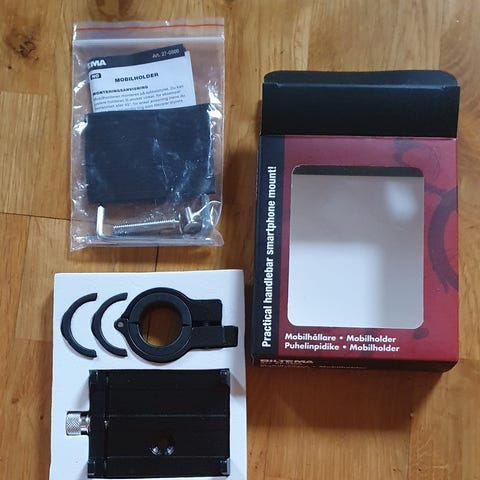 Universal pyörän puhelinpidike, joka kiinnittyy ohjaustankoon. 360° kääntyvä mekanismi mahdollistaa puhelimen asennon säätämisen. Musta väri ja säädettävä koko sopivat useimmille puhelinmalleille. Materiaali kestävää muovia ja metallia.