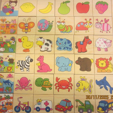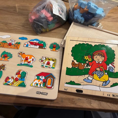 Lasten puiset palapelit. Todella hyväkuntoiset! Mukana puinen laatikko.