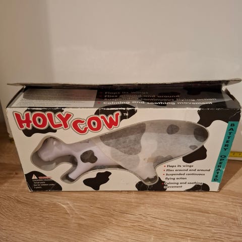 Vanha lehmä lelu, maalipinta hieman kärsinyt. En osaa sanoa ikää.