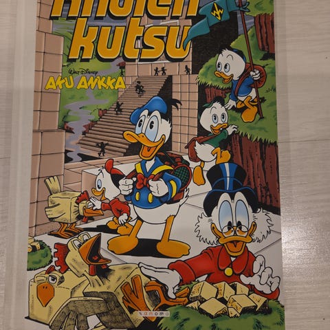 Aku Ankka Vanhan linnan salaisuus/Andien kutsu, kovakantinen sarjakuvakirja, pieni tahra sivuissa, muuten hyväkuntoinen.