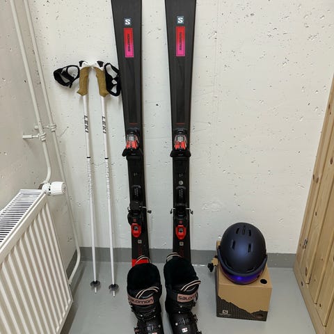 Myydään Salomon- kaarevamalliset laskettelusukset, monot, sauvat ja kypärä. Muutama kerta käytetty, kuin uudet.