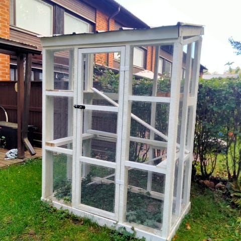 Kissanäyttelyissä käytetty yhdellä kissalla, leikattu uroskissa. Ei enää tarvetta. Paljon kissankarvoja kaupan päälle, poistellaan enimmät ennen myyntiä. Sisältää pehmusteen ja kantokassin sekä alkuperäisen kirkkaan pakkauksen myös.