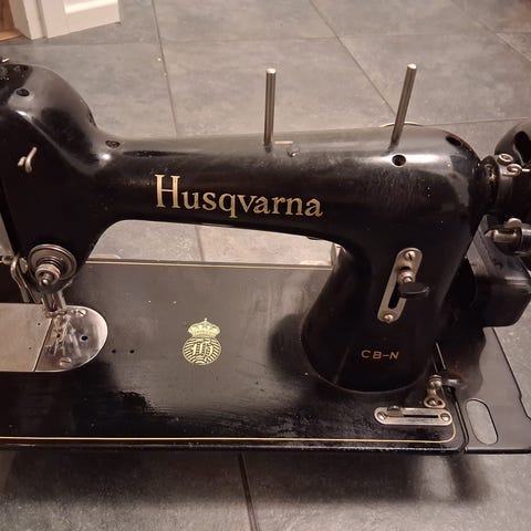 Husqvarna vanha ompelukone, jossa puinen pöytätaso ja metallinen jalkaisia. Pöytätasossa näkyy kulumaa ja pieniä vaurioita, ks kuva. Laatikot lukittavissa. Tukeva ja painava. Vain nouto.