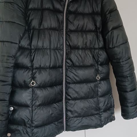 Esprit takki musta, naisten koko M. Takissa on musta pohjaväri ja raidallinen kuviointi. Materiaalitiedot ja hoito-ohjeet löytyvät tuotteen sisäetiketistä.
