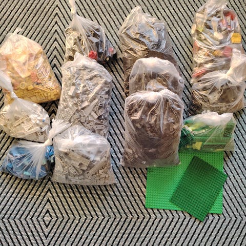 LEGO Palikat ja hahmot sisältää erilaisia värikkäitä palikoita, ajoneuvoja, eläinhahmoja ja ihmishahmoja. ISO 60 litrainen laatikollinen paloja. Myös nouto