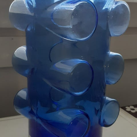 Ollut tuotannossa 1970-luvulla. Maljakon korkeus 20cm ja halkaisija n. 13cm.