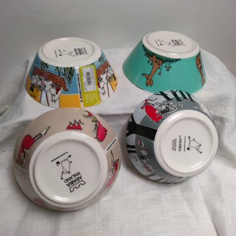 Myydään kaksi kappaletta vähän käytettyjä ja hyväkuntoisia muumikulhoja: Talviuni (2015) ja Lumihevonen (2016). Kulhoissa ei ole tarroja.