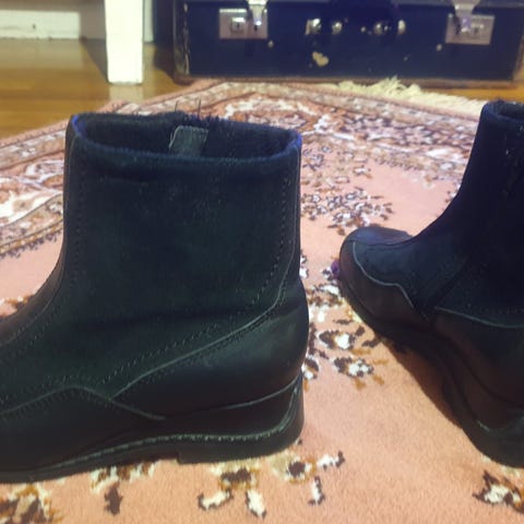 Siistikuntoiset Pomarin mustat nilkkurit, koko 39. Molemmissa kengissä on ulkosyrjällä pienet kulumakohdat, siksi halpa hinta.