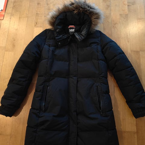 Helly Hansen musta talvitakki, naisten XL-koko. Takki on pidempää mallia, lämmittää peppua ja reisiä. Sopii kylmiin sääolosuhteisiin. Untuva 60% höyhen 40%. Huppu, jonka reunassa on irrotettava tekoturkis. Hihansuissa on joustavat sisäresorit. Takissa on Helly Hansenin logo hihaosassa.