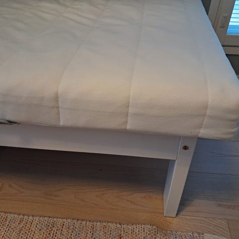 Puinen sängynrunko, mitat 90x200 cm, vaaleanruskea väri. Runkolevyt ja tukipuut näkyvissä, sopii yhden hengen sängyksi. Materiaali puu, rakenne tukeva ja yksinkertainen. Nouto Oulunsalo.