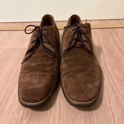 Sisäpohjan mitta noin 29 cm. Kokomerkintää en löytänyt, mutta 42 tai 43. Paloheinässä, mmm. Vain nouto