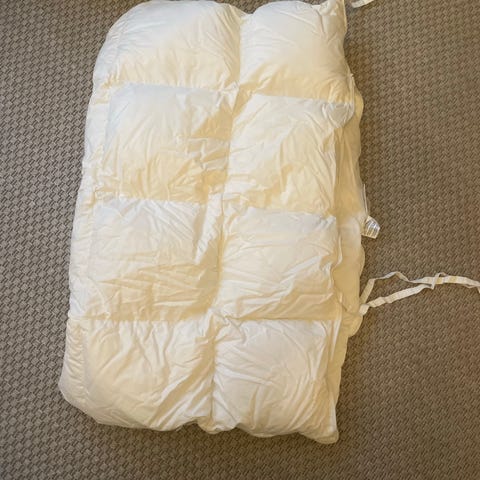 Monikäyttöinen vauvan untuvamakuupussi/-peitto. Sopii hyvin esim. vaunukoppaan tai saa avattua peitoksi (n. 90x120 cm). Oikein siisti käytetty kunto, juuri pesty. Kaksi ihan todella haaleaa tahraa huomasin, jotka hieman näkyvät pesun jälkeen. Lemmikitön ja tupakoimaton talous.