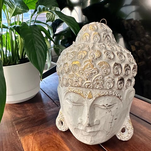 Erinomaisessa kunnossa oleva kannettava, kokoontaitettava buddhalainen matka-alttari eli triptyykki. Käytetään meditaatioon ja rituaaleihin matkoilla. Se taittuu saranoistaan auki useiden buddhalaisten jumaluuksien esittelyyn.