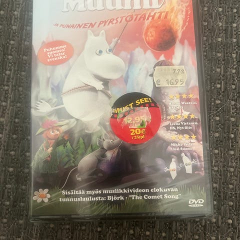 Muumi ja punainen pyrstötähti dvd. Jotain käytön jälkiä näkyvissä.