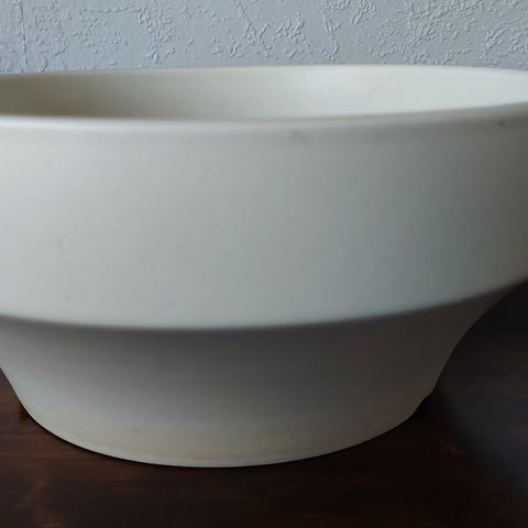 On nämä vaan niin kauniita ja silmää miellyttäviä! Vanha 60-luvun ruukku, aluslautanen ei tallella. Pieni halkeama ja yksi mieto pala pois reunasta, eivät ole itseä haitanneet eivätkä näy, jos ruukun kääntää, ajan hammas siis näkyy, kts. kuvat. Likaa ja kalkkijäämiä sisässä, en ole koittanut poistaa. Korkeus 11,5 cm, halkaisija 14,7 cm.