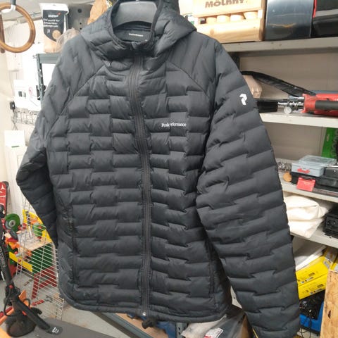 Peak Performance Geir J takki miehille, koko XXL, musta väri. Takki on valmistettu 61% polyesteristä ja 39% puuvillasta, vuori ja täyte 100% polyesteriä. Takissa on huppu ja se soveltuu ulkoiluun.