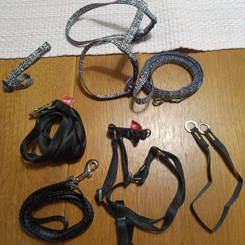 Myydään kissan valjaat ja flex-talutin (3 m). Nouto Linnainmaalta.