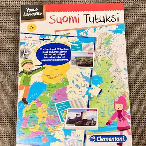 Myydään Suomi tutukdi palapeli ja siihen liittyvät kortit. Kaikki osat tallella.