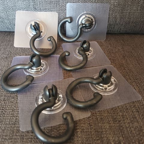 Kuvannäköiset käyttämättömät koukut tarrakiinnityksellä. Soveltuvat pienten esineiden ripustamiseen seinälle. Takana käyttökohteet ja asennusohjeet. Nouto tai posti. En tee toridiiliä.