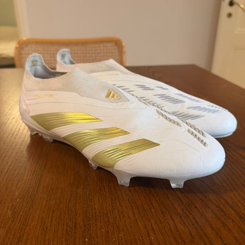 Myydään Adidas Predator Elite FG -jalkapallokengät, jotka ovat olleet käytössä vain muutaman treenin ajan. Kengät ovat erittäin hyvässä kunnossa – ei repeämiä, rakenteet ehjät ja nappulat kunnossa. Sopivat täydellisesti pelaajalle, joka haluaa laadukkaat ja tukevat kengät hyvällä tuntumalla palloon.