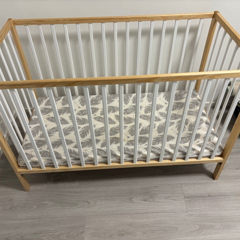 JLY Pinnasänky, käytetty muutamalla vauvalla ensimmäiset 6 kuukautta. Siinä on pyörät liikkuvuuden helpottamiseksi. Patjan saa mukaan. Päällinen pesty pyykeille tarkoitetulla sanytolilla ja hajusteettomalla pesuaineella.