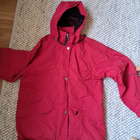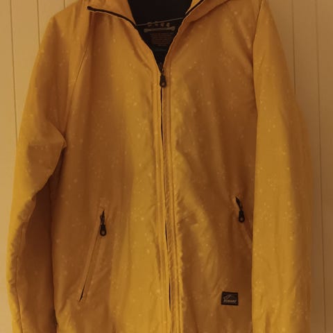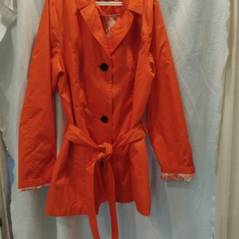 Vähäiselle käytölle jäänyt oranssi lehtikuvioitu ulkoilutakki kevyellä vanulla 🧡 Monta taskua ja säädettävä helma. Olka-helma 66cm.