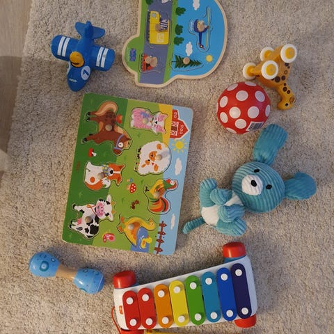 Hyväkuntoisia yhdellä leikittyjä. Ehjiä ja äänet kuuluu. Jotain pieniä käytönjälkiä. Nouto.