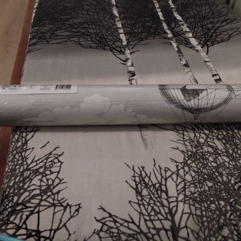 Rustan Skandinavia tapettia kaksi avaamatonta rullaa. Sinisellä pohjalla valkoisia purjeveneitä.