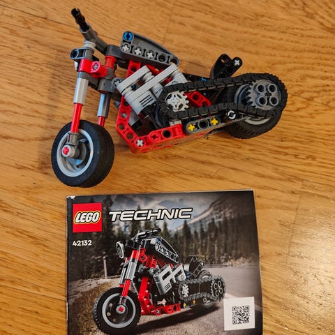 Lego technic moottoripyörä alkuperäisessä paketissaan.