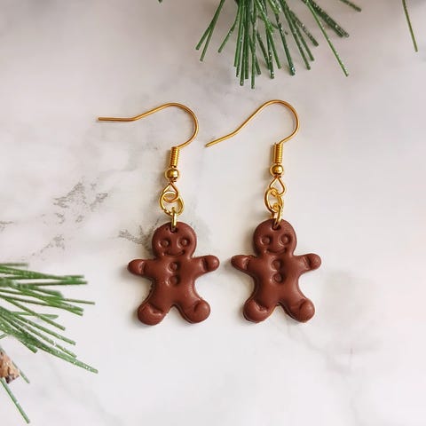 Käsintehdyt, uudet ja kevyet Fimo -massasta valmistetut piparkakku korvakorut.