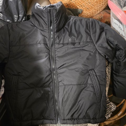 Myydään uusi Adidaksen lyhyt puffer-takki koossa S/36. Ovh. 99e.