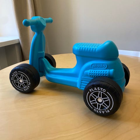 Plasto lasten potkupyörä mustaa muovia. Sopii pienille lapsille leikkikäyttöön. Kevyt ja kestävä rakenne, nelipyöräinen malli tarjoaa vakautta ajamiseen. Ollut meillä ulko ja sisäkäytössö, renkaissa hieman kiven jälkiä.