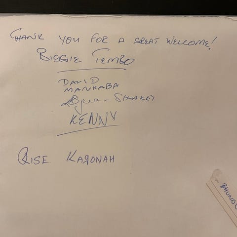 London Boys -duon nimikirjoitukset paperilla. Duo kuoli auto-onnettomuudessa 1996.