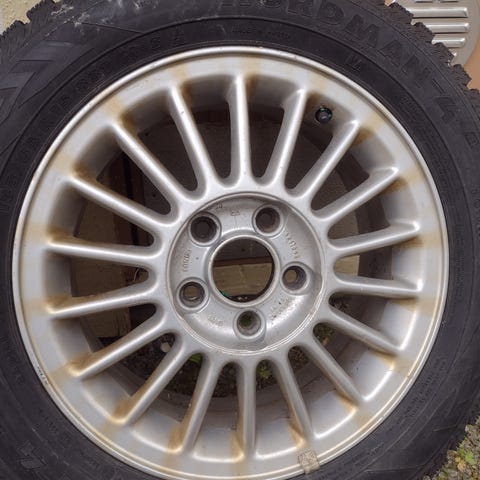Ok kuntoiset ja suorat vanteet. Kunnon puhdistuksella saa varmasti vielä ihan siistit.